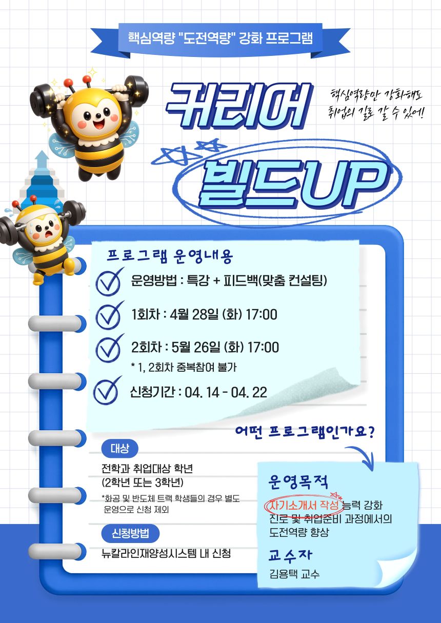 2026학년도 「커리어 빌드UP」을 아래와 같이 시행하오니, 학생들은 적극 참여바랍니다.